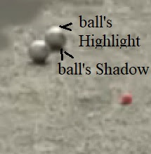 Because it is difficult for us (the mind) to judge distance and the target "petanque ball is only about 3 inches large; your take-out shot at a such a long distance need the help the subconscious mind to judge the distance. Here is another aspect of "Memory data" retrevial and where "Routines" become involved in "Pre-Muscle Memory" communication. In the photo (right),we see a bit of the answer. What seems as simply an action of repairing or prepare the surface in front of the target ball; is actually a communication with the subconscious. The subconscious is given time to adjust to the actual distance which it just felt as the athletic was walking from the shooting circle to the target. This walk also supplies a level of confidence prior to the shot.